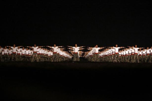 Katmandu'da,Shivaratri festivaliyle aynı güne düşen Ordu Günü kutlamalarında, Nepal ordusundan bir grup asker yeteneklerini sergiliyorlar.