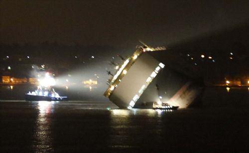 Devasa gemi yan yattı