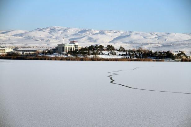 Ankara’da hava sıcaklığının eksi 20 dereceye kadar düşmesi, Gölbaşı ilçesinde Mogan ve Eymir göllerinin donmasına neden oldu.