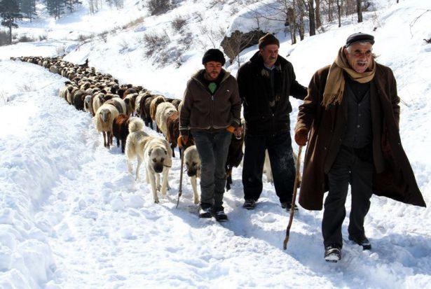 Merkeze bağlı Bahdeşen köyüne ait koyun sürüsü, kış aylarında karın az yağdığı 18 kilometre mesafedeki Abdal kanyonunda otlamaya götürüldü.