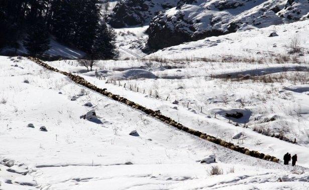 Ekiplerin yolu açmasıyla köye doğru götürülen koyunlardan bazıları Kura Nehri'nin buzlu tabakasını geçerken zorlandı. Buzlu zeminde düşen koyunlara sürü sahipleri yardımcı olurken, yaralananlar ise omuzlarda taşındı.