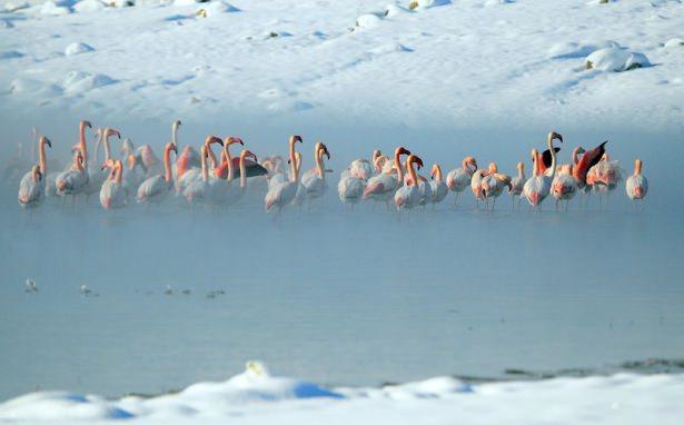 Niğde, Karaman, Aksaray ve Konya'nın bazı ilçelerindeki sazlık alanlar soğuk hava nedeniyle donunca, flamingolar daha geniş sulak alanlar olan baraj gölü ve sulama göletlerine yöneldi.
