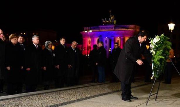 Berlin’in tarihi Brandenburg Kapısı yanındaki Paris Meydanı'nda yapılan gösteriye Merkel’le birlikte hemen hemen tüm bakanlar katıldı.