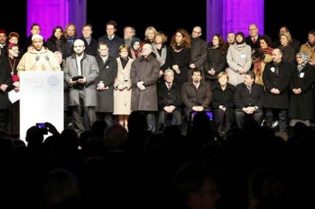 Berlin’in tarihi Brandenburg Kapısı yanındaki Paris Meydanı'nda yapılan gösteriye Merkel’le birlikte hemen hemen tüm bakanlar katıldı.