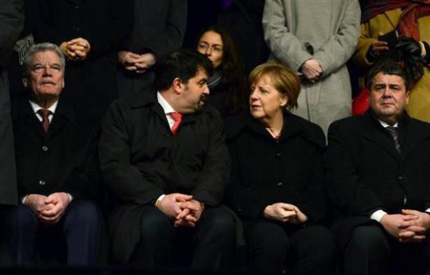 Gösteriye Almanya Cumhurbaşkanı Joachim Gauck'un yanı sıra Başbakan Angela Merkel, Başbakan Yardımcısı Sigmar Gabriel olmak üzere bakanlar ve siyasi parti temsilcileri de katılarak, "Teröristlerin toplumu bölmesine müsaade etmeyiz" mesajı verdi.