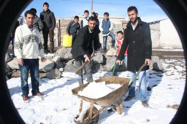 Okulda 11 öğretmen var. Susuzluktan kaçıp gitmesinler diye bidonlarla su taşıyoruz. Su olmadığı için evde banyo bile yapamıyoruz. Kar eriterek hayvanlarımızın su ihtiyacını karşılıyoruz.