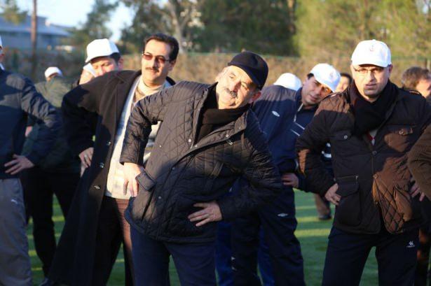 Boyun hareketleriyle başlayan egzersiz hareketleri kollarla devam etti. Bel çevirme hareketlerinde Bakan Müezzinoğlu esprileriyle herkesi güldürdü.