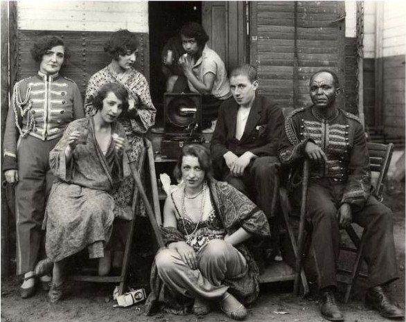 Bir karavanın önünde dinlenen sirk sanatçıları (1930'lar)