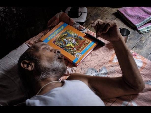82 yaşındaki Kishore Pandey Hinduların kutsal kitabının yanından ayırmıyor.