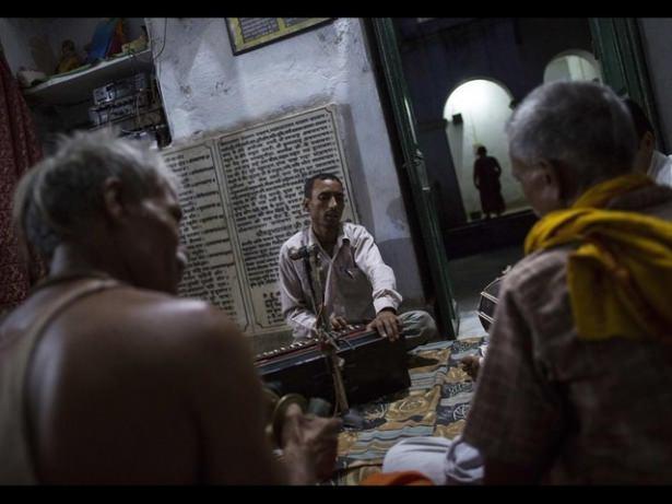Kurtuluş Evi'nde akşam duası enstrümanlar eşliğinde devam ediyor.