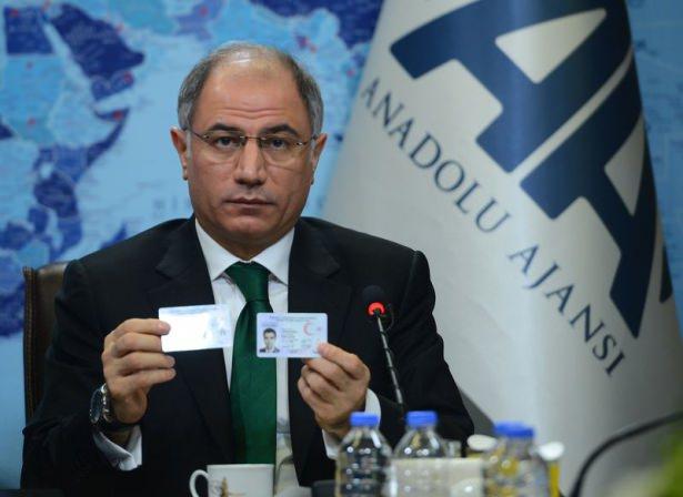 Bakan Ala, sorulan bir soru üzerine, yeni kimlik kartlarının bir örneğini gösterdi.