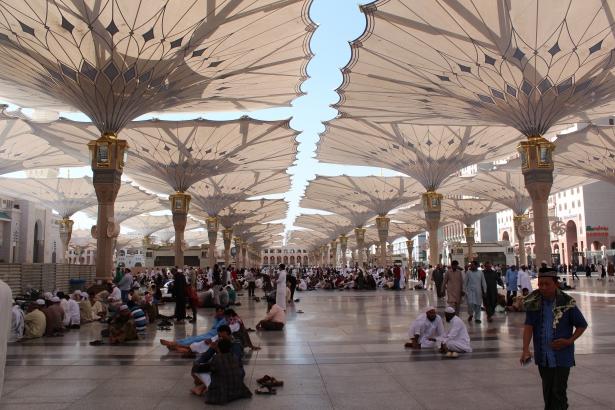 Ziyaretçiler, Mescid-i Nebevi'de ibadet etmenin hazzını yaşıyor.