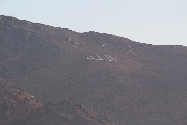 Uhud Dağı'nın sarp yamaçlarına yazılmış Allah lafzı dikkatlerden kaçmıyor.