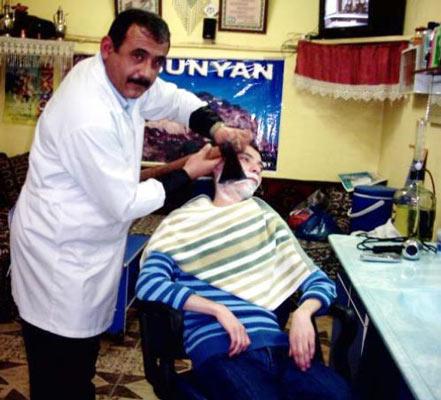 Kayseri'nin Bünyan ilçesinde bir berber, isteyenlerin sakal tıraşını baltayla yapıyor. Osman Özen, baltayla tıraşın da bir maharet işi olduğunu ifade ederek, ilçe halkının yanı sıra bu özelliğini duyan çevre ilçeler, şehir merkezinde ve hatta farklı illerden gelen insanların olduğunu söyledi. (CİHAN/Selahattin Ünal)