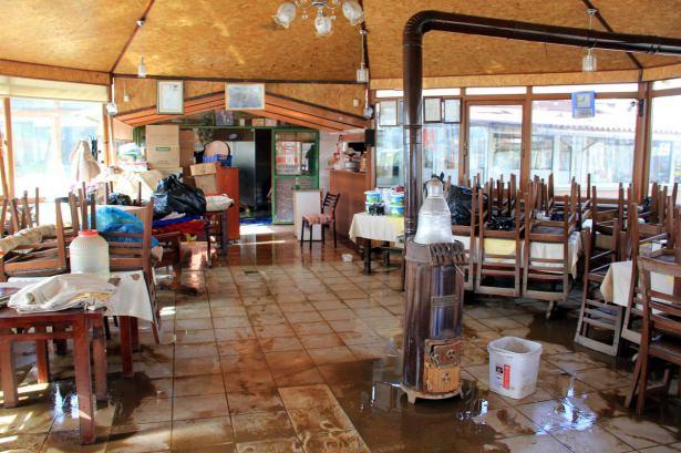 Karaağaç Mahallesi'ndeki çay bahçesi, restoran ve evi olan vatandaşlar, eşyalarını dışarıya çıkararak binalarda temizlik yapıyor.