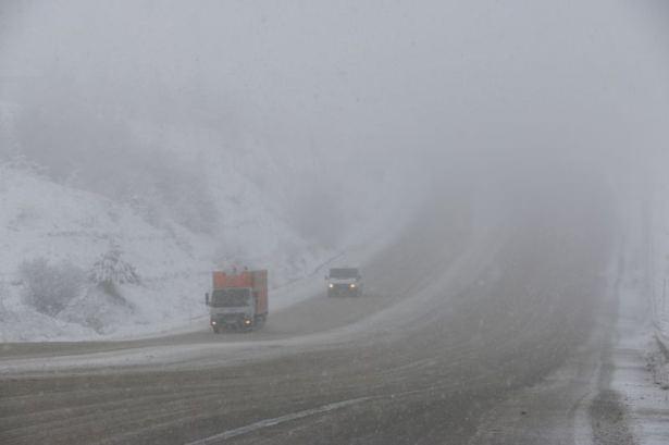 Denizli-Antalya karayolunda etkisini artıran kar yağışı ve sis, ulaşımı olumsuz etkiledi.
