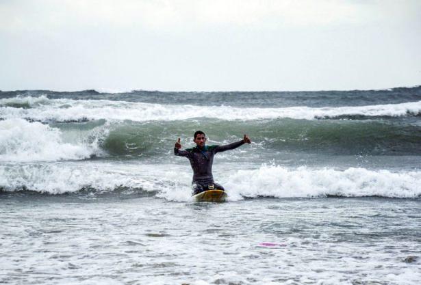 Gazze sahilinde sörf keyfi
