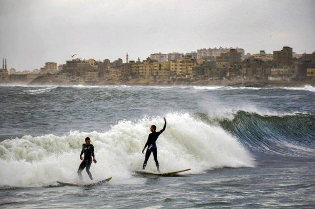 Gazze sahilinde sörf keyfi