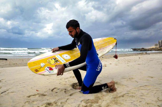 Gazze sahilinde sörf keyfi