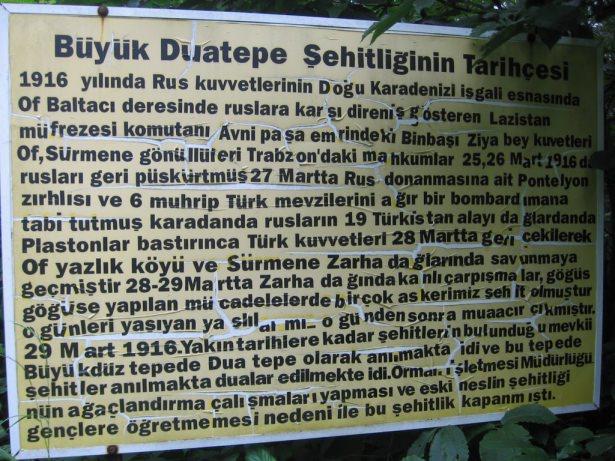 "1916 yılında Rus kuvvetlerinin Doğu Karadeniz'i işgali esnasında Of Baltacı deresinde Ruslara karşı direniş gösteren Lazistan müfrezesi komutanı Avni Paşa emrindeki Binbaşı Ziya Bey kuvvetleri Of, Sürmene gönüllüleri Trabzon'daki mahkûmlar 25, 26 Mart 1916'da Rusları geri püskürtmüş