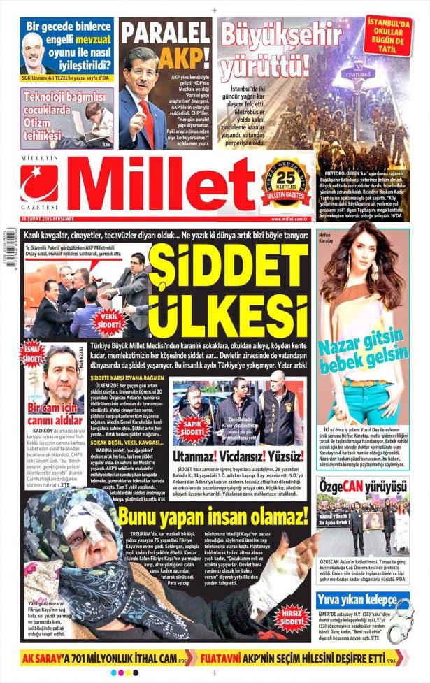 19 Şubat 2015 gazete manşetleri