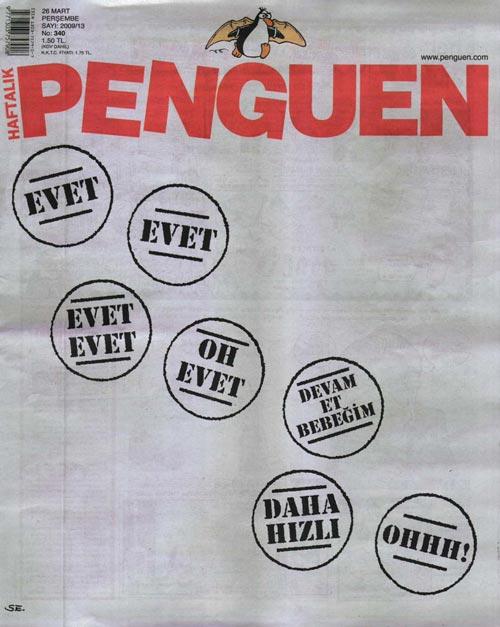 2009'un en iyi mizah dergisi kapağı değerlendirmesinde Penguen'in 26 Mart tarihli sayısı birinci oldu.