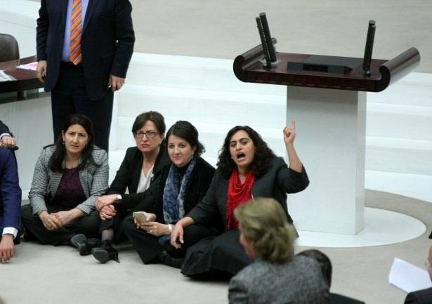 TBMM Genel Kurulu'nda iç güvenlik paketinin görüşmeleri tartışmalı başladı. Muhalefet milletvekilleri tasarı üzerinde konuşmazken, CHP ve HDP milletvekilleri Genel Kurul salonunun ortasına oturarak, alkış ve sloganlarla tepki gösteriyorlar.