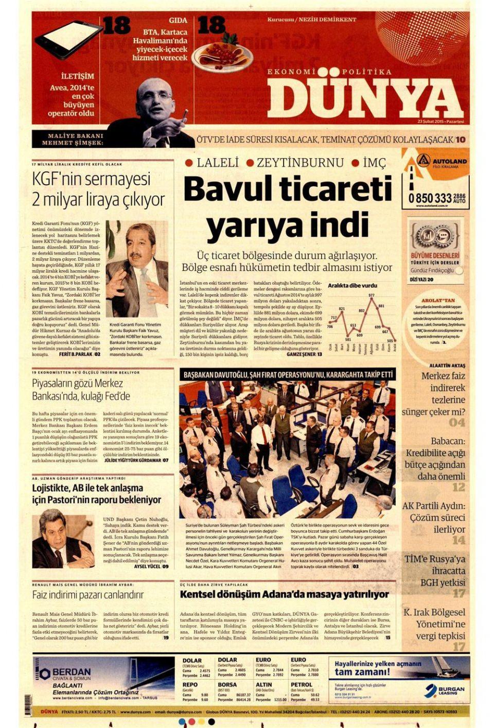 23 Şubat 2014 gazete manşetleri