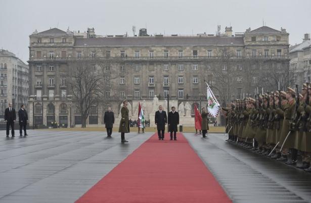 Başbakan Ahmet Davutoğlu, Macaristan Başbakanı Viktor Orban tarafından Parlamento binasında resmi törenle karşılandı.