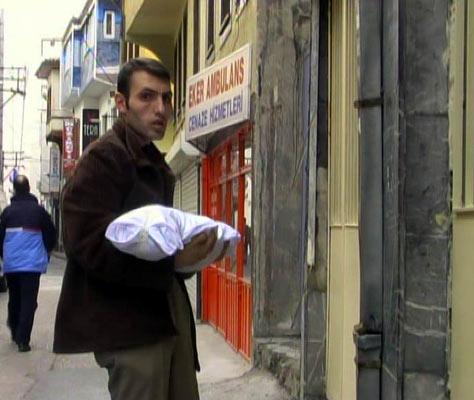 İNEGÖL İLÇESİNDE, SOBADAN SIZAN KARBONMONOKSİT GAZINDAN ZEHİRLENEREK HAYATINI KAYBEDEN SEKİZ AYLIK BEBEK, ADLİ TIP KURUMU'NA BABASININ KUCAĞINDA GETİRİLDİ.