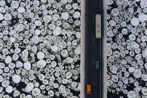Köprünün yanındaki buzullar