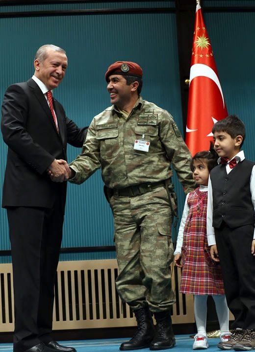 Konuşmasının ardından Erdoğan, Ankara’da ikamet eden 27 şehit yakını ve gaziye Devlet Övünç Madalyalarını tevcih etti.