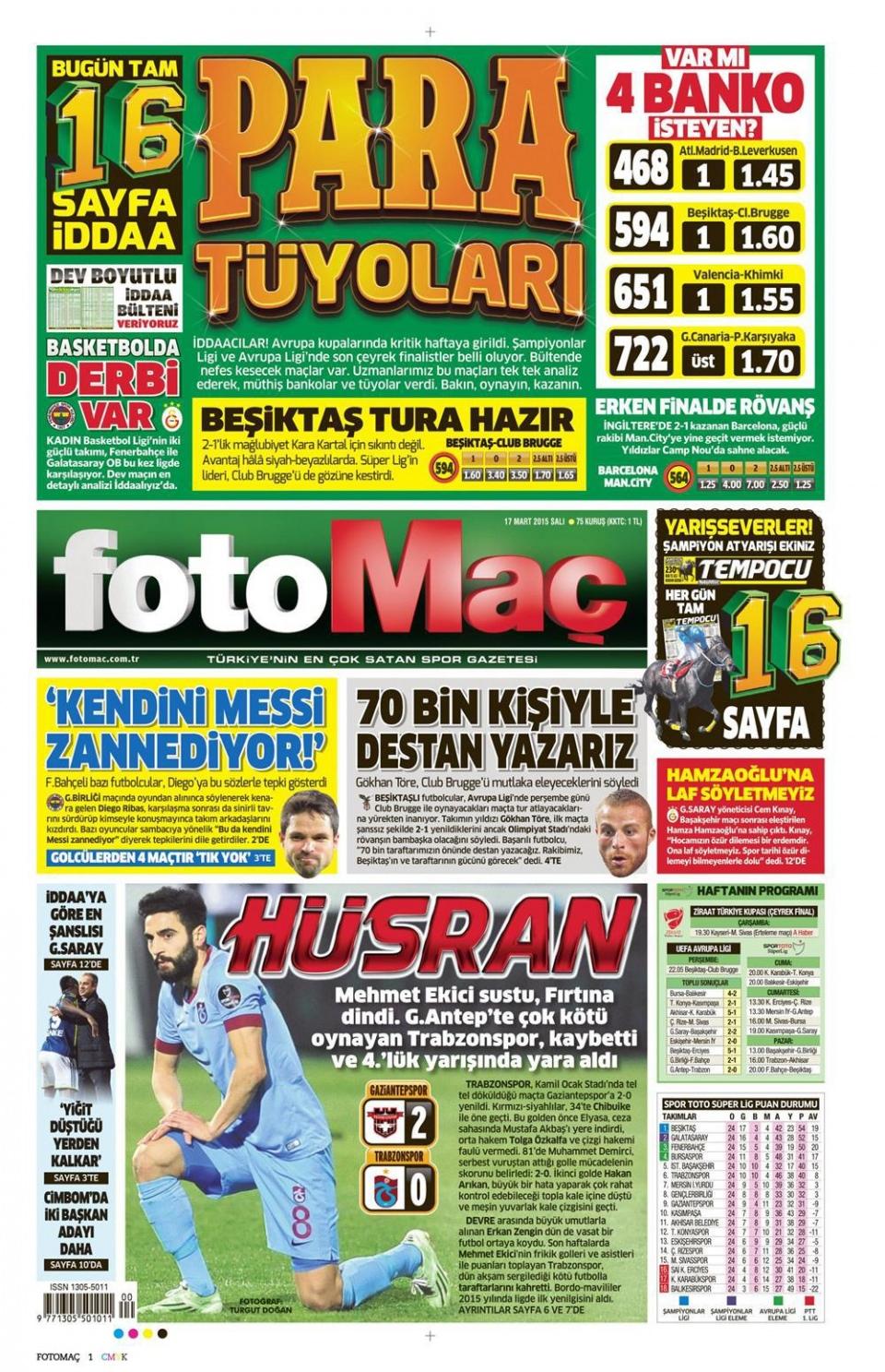 17 Mart 2015 gazete manşetleri
