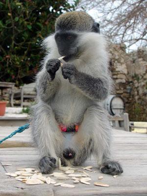 Antalya'nın Manavgat ilçesi Side beldesinde bir restoran işletmecisi Brezilya'dan satın aldığı Tamarin cinsi maymuna çekirdek yetiştiremiyor. küçük maymunun günlük 4 paket çekirdek yiyor.