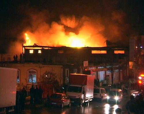 İstanbul'da yatak fabrikası alev alev yandı