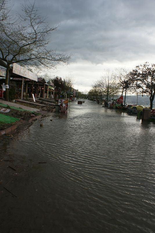 Gölün taşması sonucu, sahil yolu ve bazı evlerin bodrum katları ve bahçeleri su altında kaldı.
