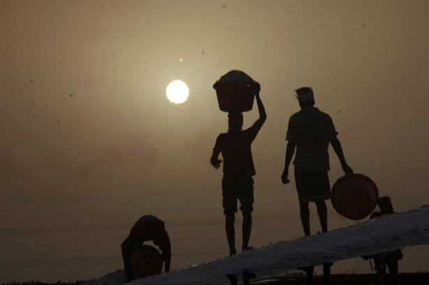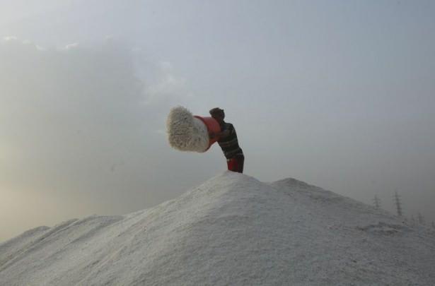 Hindistan'ın Bombay kentinde Hindistanlı işçiler tuz hasadına başladı.