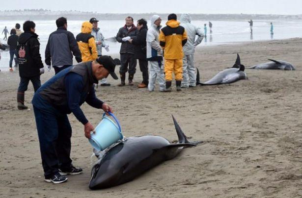 Onlarca yunus balığı kıyıya vurdu