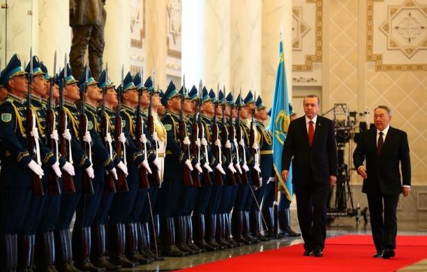 Erdoğan'a Kazakistan'da törenle karşılandı
