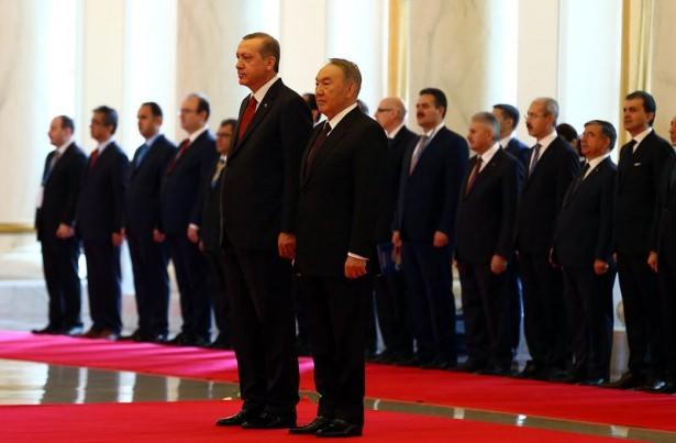 Erdoğan'a Kazakistan'da törenle karşılandı