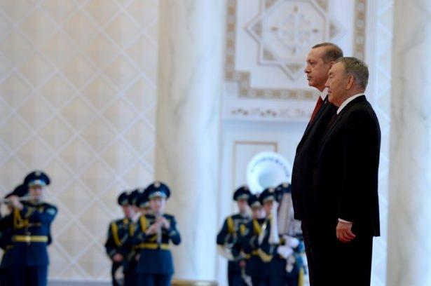 Erdoğan'a Kazakistan'da törenle karşılandı