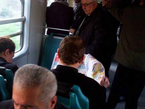 5. Oturan adamın gazetesini okumaya çalışan adam