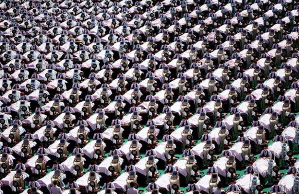 İşte Çin'in yüzlerce kişinin aynı anda yaptığı gösterilerden şaşırtıcı kareler...