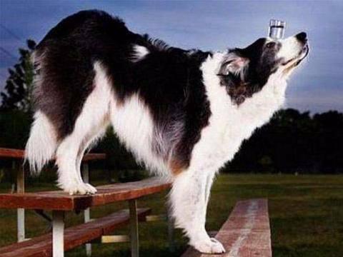 Avustralya Çobanı-Border Collie kırması Sweet Pea,"burnunun üzerinde bir bardak suyla en uzun mesafeyi yürüme" rekorunu 10 adımla gururla taşıyor.