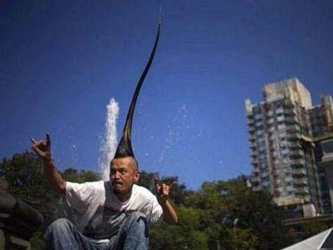En uzun mohavk saçı ile Kazuhiro Watanabe. Yaklaşık 1 metre uzunluğundaki saçlarıyla...