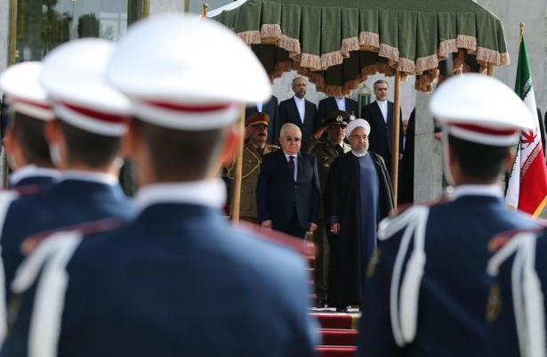 Irak Cumhurbaşkanı Fuad Masum (sağda), resmi temaslarda bulunmak üzere geldiği başkent Tahran'da, İran Cumhurbaşkanı Hasan Ruhani (solda) tarafından resmi törenle karşılandı.