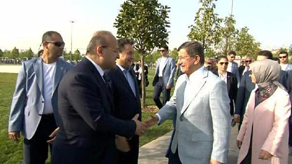 Davutoğlu, mitingdekileri helikopterden selamladı