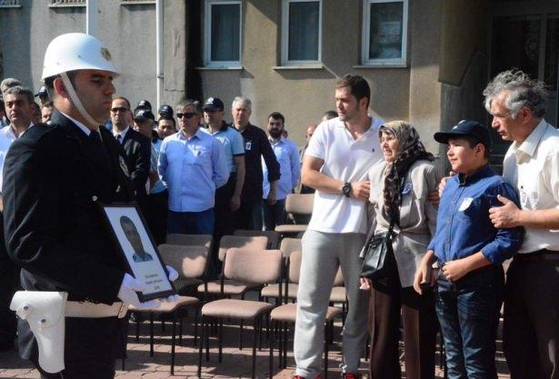 Alhan için emniyet binası önünde düzenlenen törende, oğlu 10 yaşındaki Gürkan Alhan'ın, babasının açılan tabutundaki yüzüne son kez bakıp gözyaşı dökmesi yürekleri burktu.