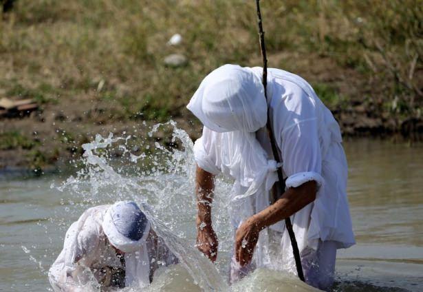 Sudan çıkan Sabiiler, "Dırapşiti ağacı"nın etrafında dualar ederek dört tur atarak ve kendilerine ayrılan yere oturdu. Nehirden çıkan kişiler konuşmadan, yemeden ve içmeden herkesin yıkanmasını bekledi.