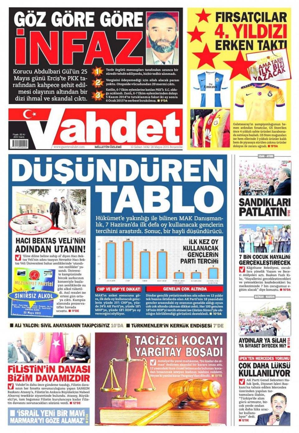 28 Mayıs 2015 gazete manşetleri